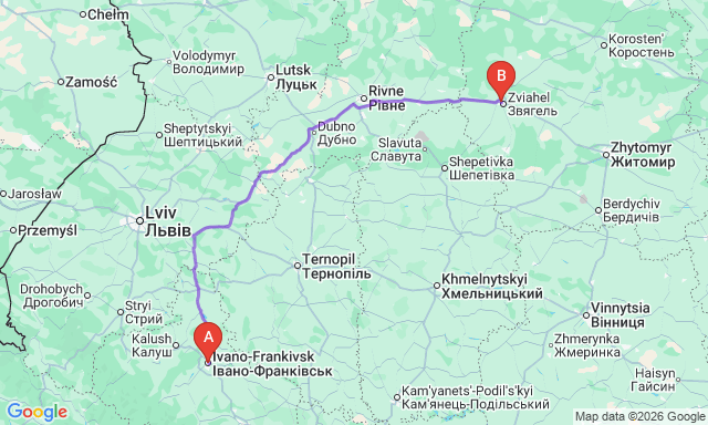 Сколько длится поездка Звягель — Ивано-Франковск?