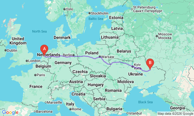 Скільки триває поїздка Амстердам — Валки?