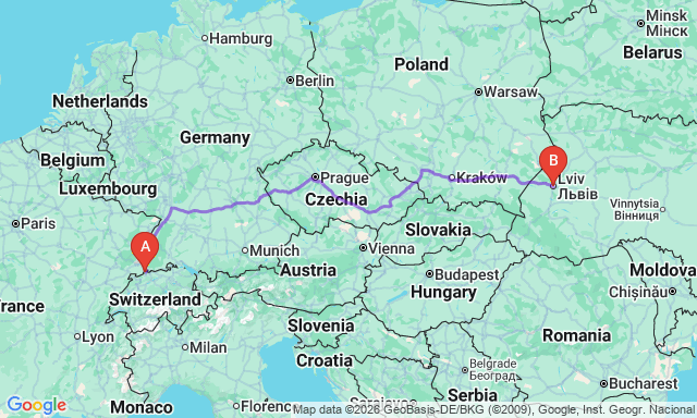 Понад 6 автобусів щодня з Базель до Львів — рейс кожні 188 хвилин. 5 перевізників, квитки від 3 253 грн.