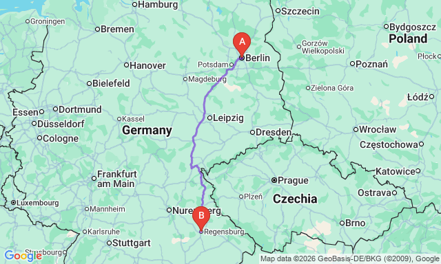 Скільки триває поїздка Берлін — Реґенсбурґ?