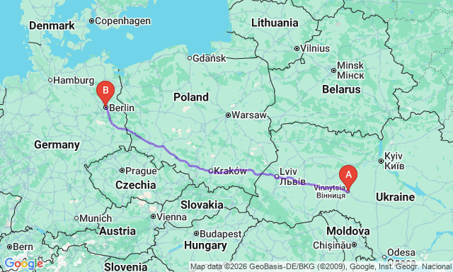 Понад 26 автобусів щодня з Берлін до Вінниця — рейс кожні 54 хвилин. 21 перевізників, квитки від 2 107 грн.