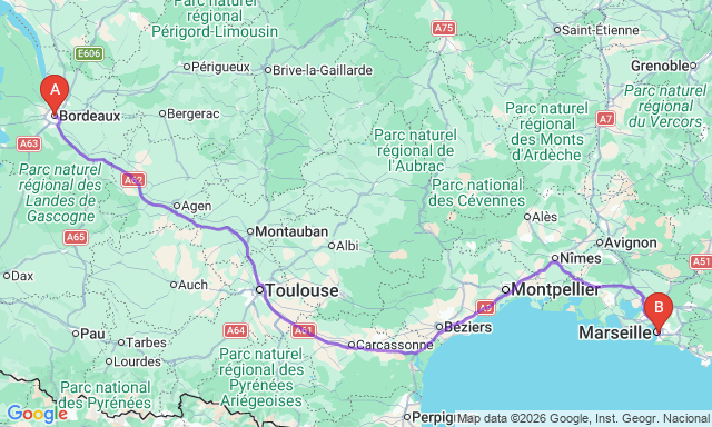 Скільки триває поїздка Бордо — Марсель?