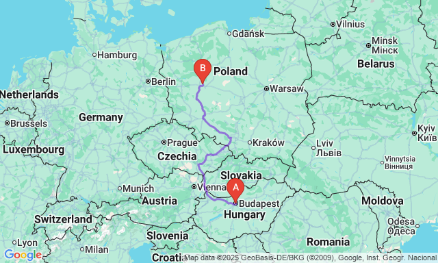 Скільки триває поїздка Будапешт — Познань?