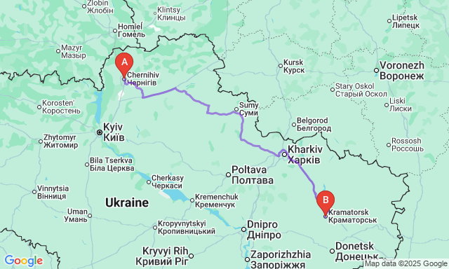 Скільки триває поїздка Чернігів — Краматорськ?