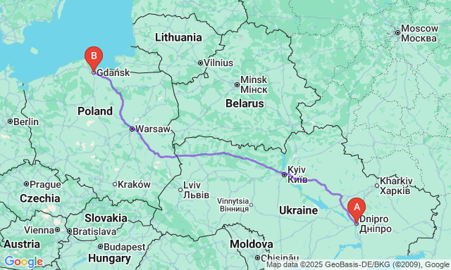 Понад 20 автобусів щодня з Дніпро до Гданськ — рейс кожні 44 хвилин. 13 перевізників, квитки від 2 680 грн.