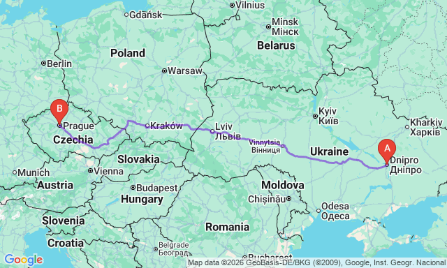 Понад 18 автобусів щодня з Дніпро до Прага — рейс кожні 57 хвилин. 45 перевізників, квитки від 3 122 грн.