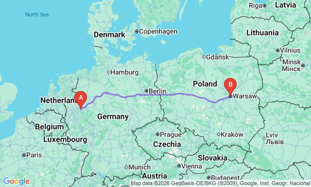 Скільки триває поїздка Дортмунд — Варшава?