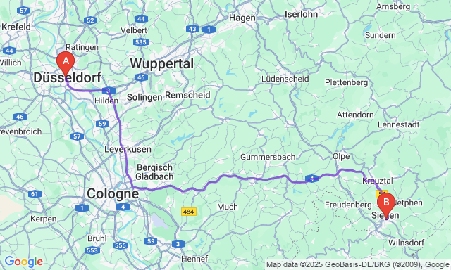Скільки триває поїздка Дюссельдорф — Siegen?