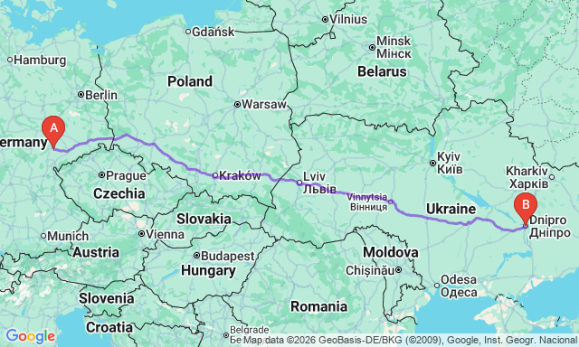 Скільки триває поїздка Гера — Дніпро?