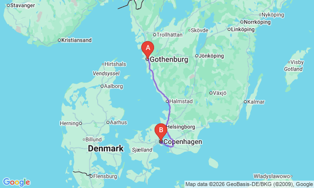 Скільки триває поїздка Гетеборг — Копенгаген?