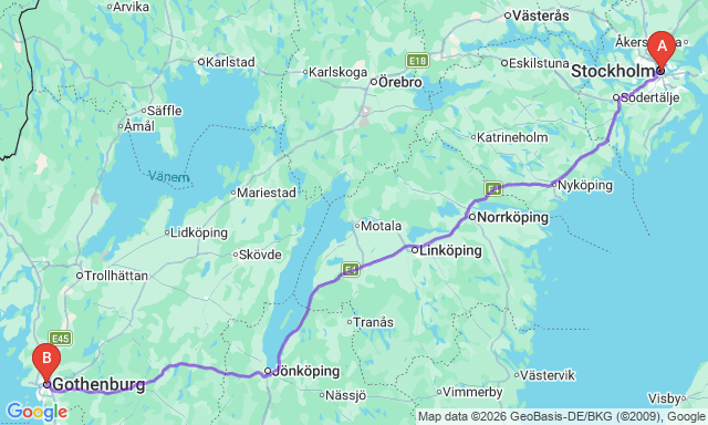 Скільки триває поїздка Гетеборг — Стокгольм?
