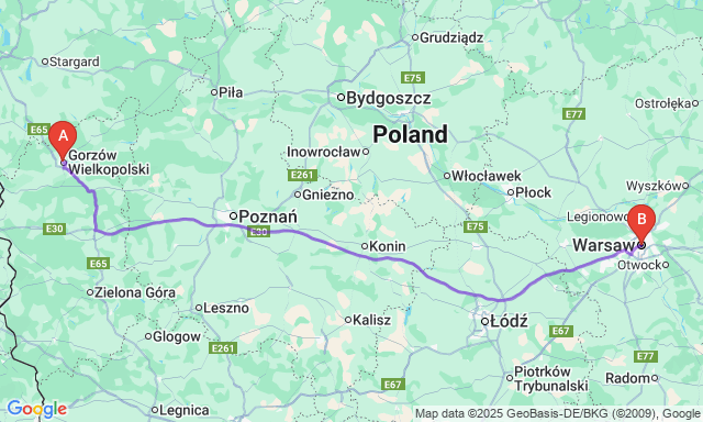 Скільки триває поїздка Ґожув-Велькопольський — Варшава?