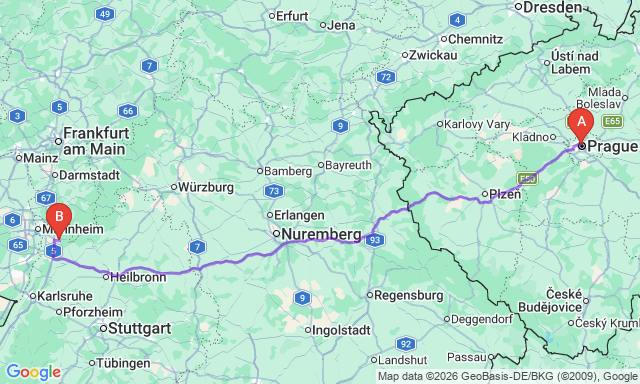Скільки триває поїздка Гайдельберг — Прага?