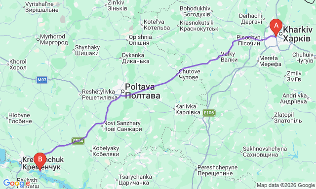 Автобуси з Харків до Горішні Плавні — 1 рейсів на день. 2 перевізників, квитки від 602 грн.