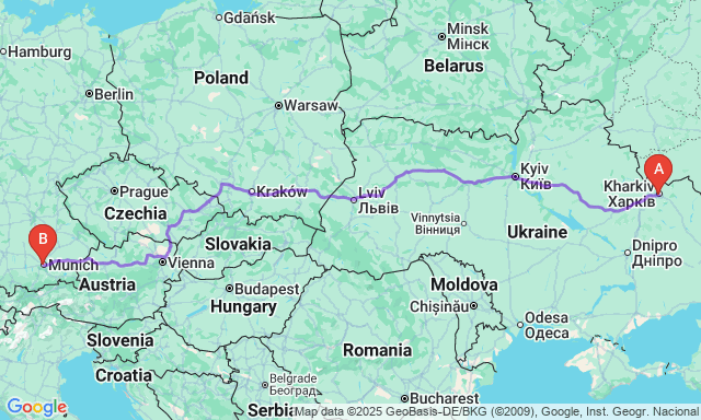 Понад 13 автобусів щодня з Харків до Мюнхен — рейс кожні 75 хвилин. 11 перевізників, квитки від 4 392 грн.