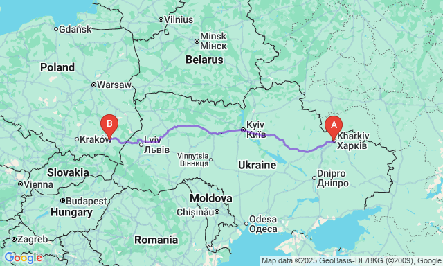 Скільки триває поїздка Харків — Ряшів?