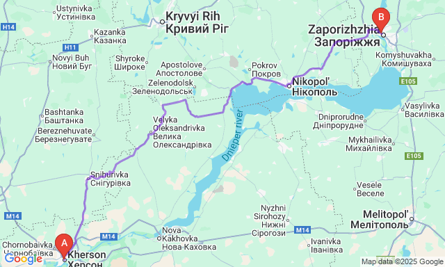 Скільки триває поїздка Херсон — Запоріжжя?