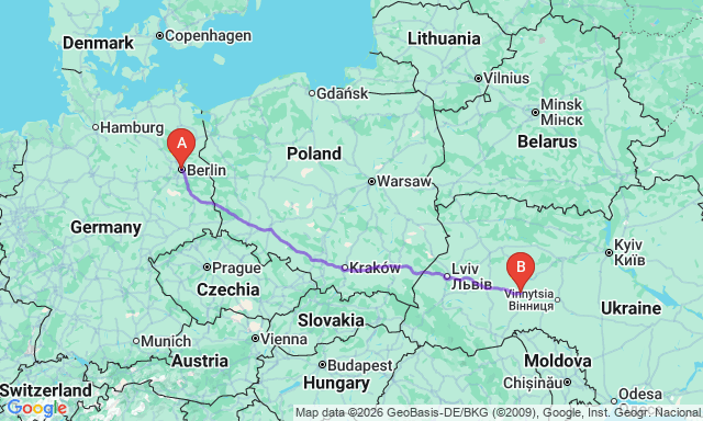Скільки триває поїздка Хмельницький — Берлін?