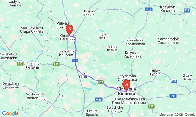Скільки триває поїздка Хмільник — Вінниця?
