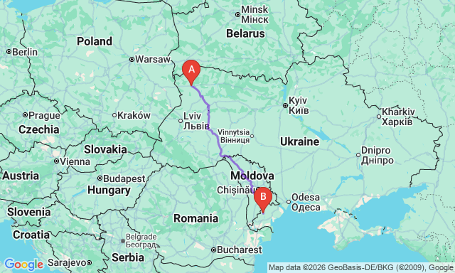 Час у дорозі займає від 1 год 35 хв до 3 год 35 хв. Відстань між містами — 821 км км.