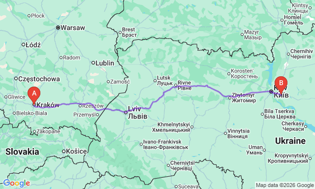 Краків — Бориспіль: автобусні квитки