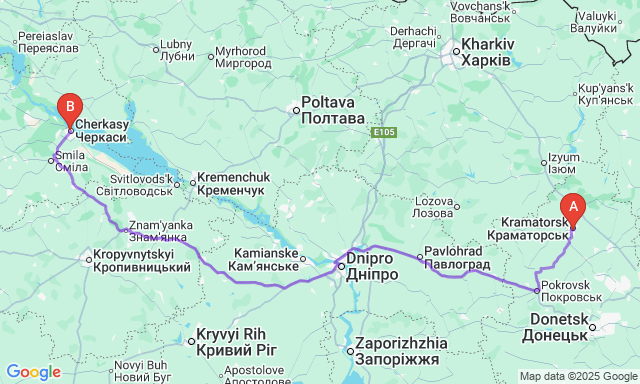 Скільки триває поїздка Краматорськ — Черкаси?