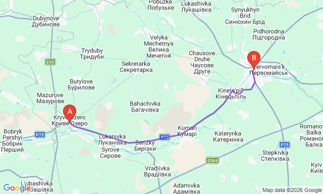 Найкраща ціна — у лютому. Квитки Криве Озеро — Первомайськ від 150 грн.