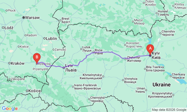 Понад 19 автобусів щодня з Київ до Ряшів — рейс кожні 53 хвилин. 19 перевізників, квитки від 2 030 грн.