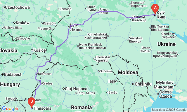 Скільки триває поїздка Київ — Тімішоара?