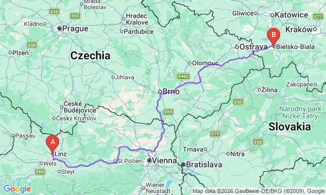 Скільки триває поїздка Линц — Бельсько-Бяла?
