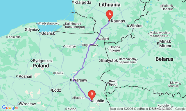 Люблін — Каунас: автобусні квитки