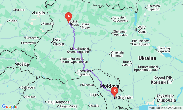 Автобуси з Луцьк до Кишинів — 2 рейсів на день. 2 перевізників, квитки від 2 399 грн.
