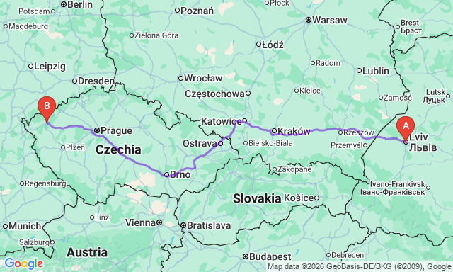 Скільки триває поїздка Львів — Карлові Вари?