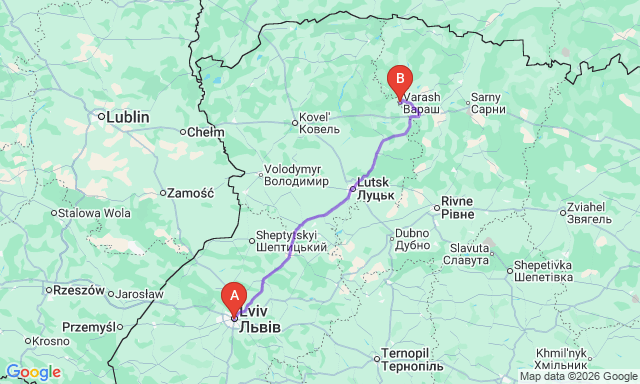 Понад 2 автобусів щодня з Львів до Вараш — рейс кожні 175 хвилин. 3 перевізників, квитки від 560 грн.