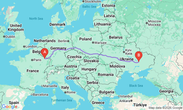 Час у дорозі займає від 44 год 15 хв до 51 год 15 хв. Відстань між містами — 2 103 км км.
