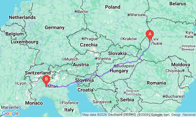Скільки триває поїздка Мілан — Львів?