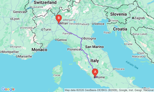 Скільки триває поїздка Мілан — Рим?