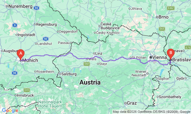 Понад 9 автобусів щодня з Мюнхен до Братислава — рейс кожні 129 хвилин. 1 перевізників, квитки від 1 699 грн.