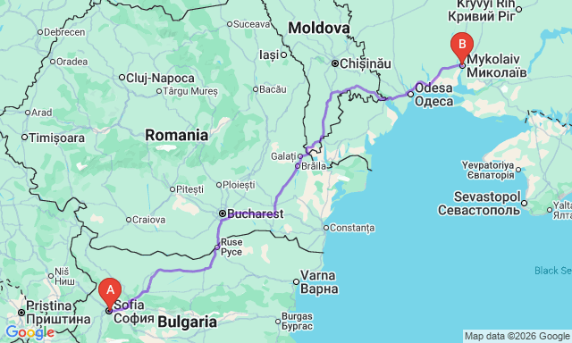 Понад 2 автобусів щодня з Миколаїв до Софія — рейс кожні 390 хвилин. 5 перевізників, квитки від 2 700 грн.