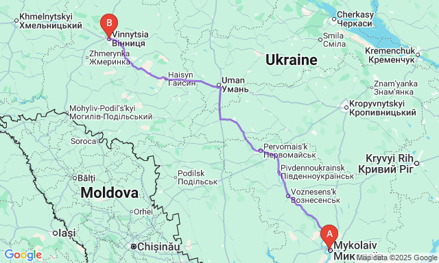 Скільки триває поїздка Миколаїв — Вінниця?