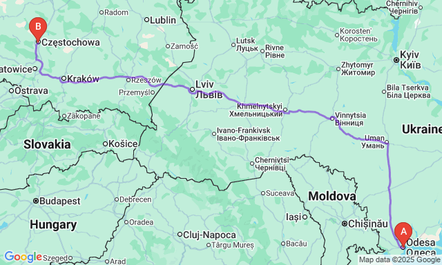Скільки триває поїздка Одеса — Ченстохова?