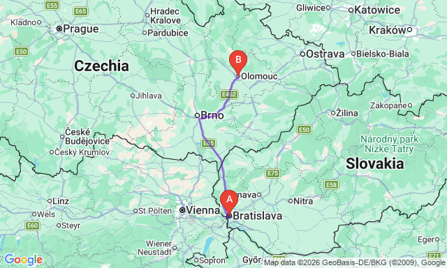 Понад 9 автобусів щодня з Оломоуц до Братислава — рейс кожні 126 хвилин. 1 перевізників, квитки від 639 грн.