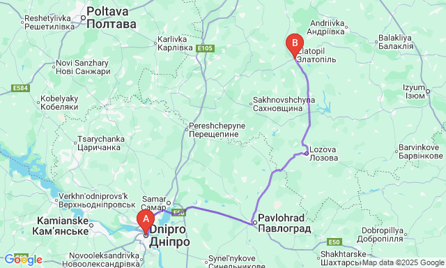 Скільки триває поїздка Златопіль — Дніпро?