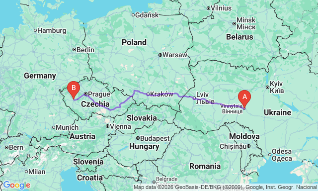Скільки триває поїздка Пльзень — Вінниця?