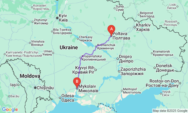 Скільки триває поїздка Полтава — Миколаїв?