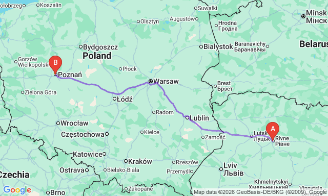 Познань — Рівне: як дістатися з пересадкою