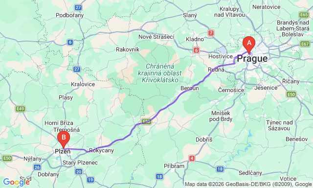 Скільки триває поїздка Прага — Пльзень?
