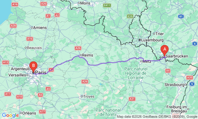 Скільки триває поїздка Саарбрюккен — Париж?