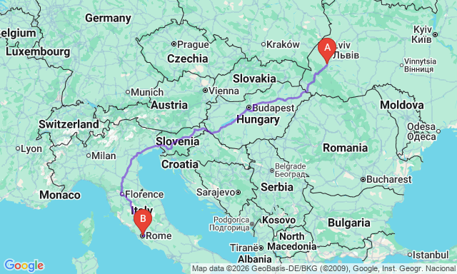 Скільки триває поїздка Стрий — Рим?