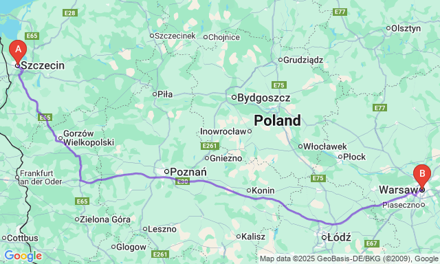 Скільки триває поїздка Щецин — Варшава?